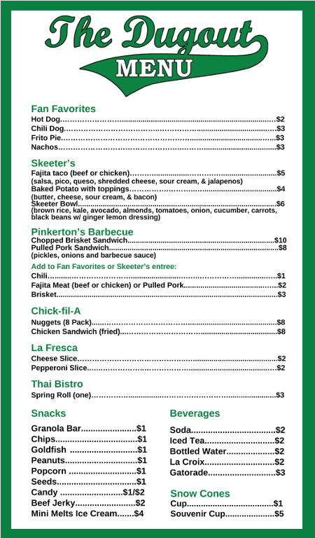 Our South Campus concession stand is run by a 3rd party vendor.